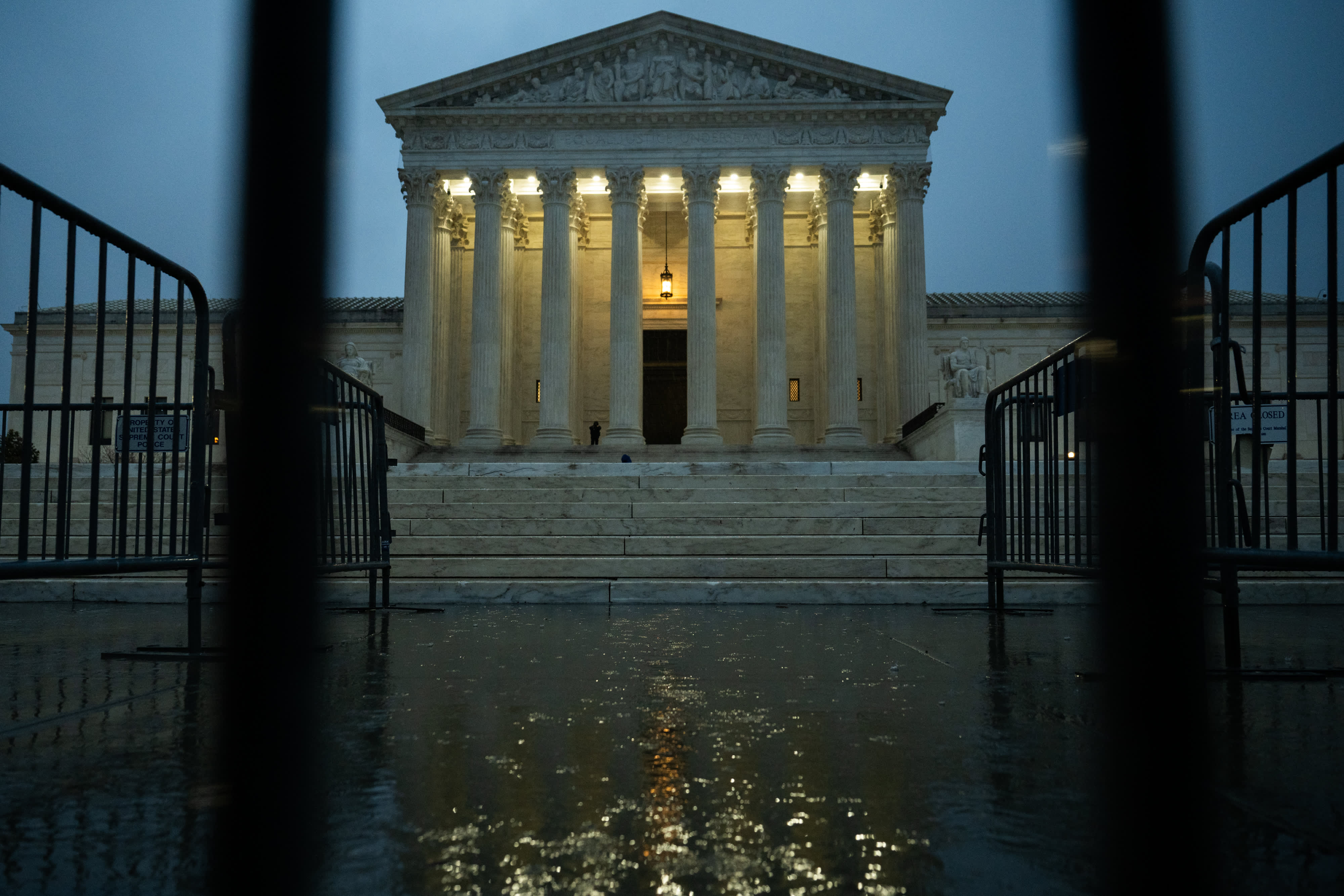The Supreme Court during a rain storm in Washington, Feb. 20, 2026.